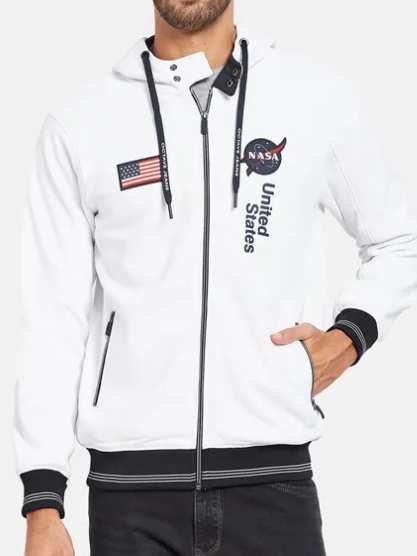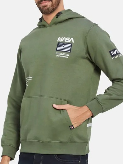 NASA Printed Hooded Fleece Pullover Sweatshirt